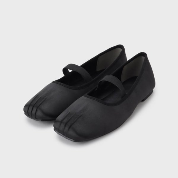 サテン素材を使用したスクエアトゥのバレエシューズは、洗練されたシンプルな印象が魅力です。