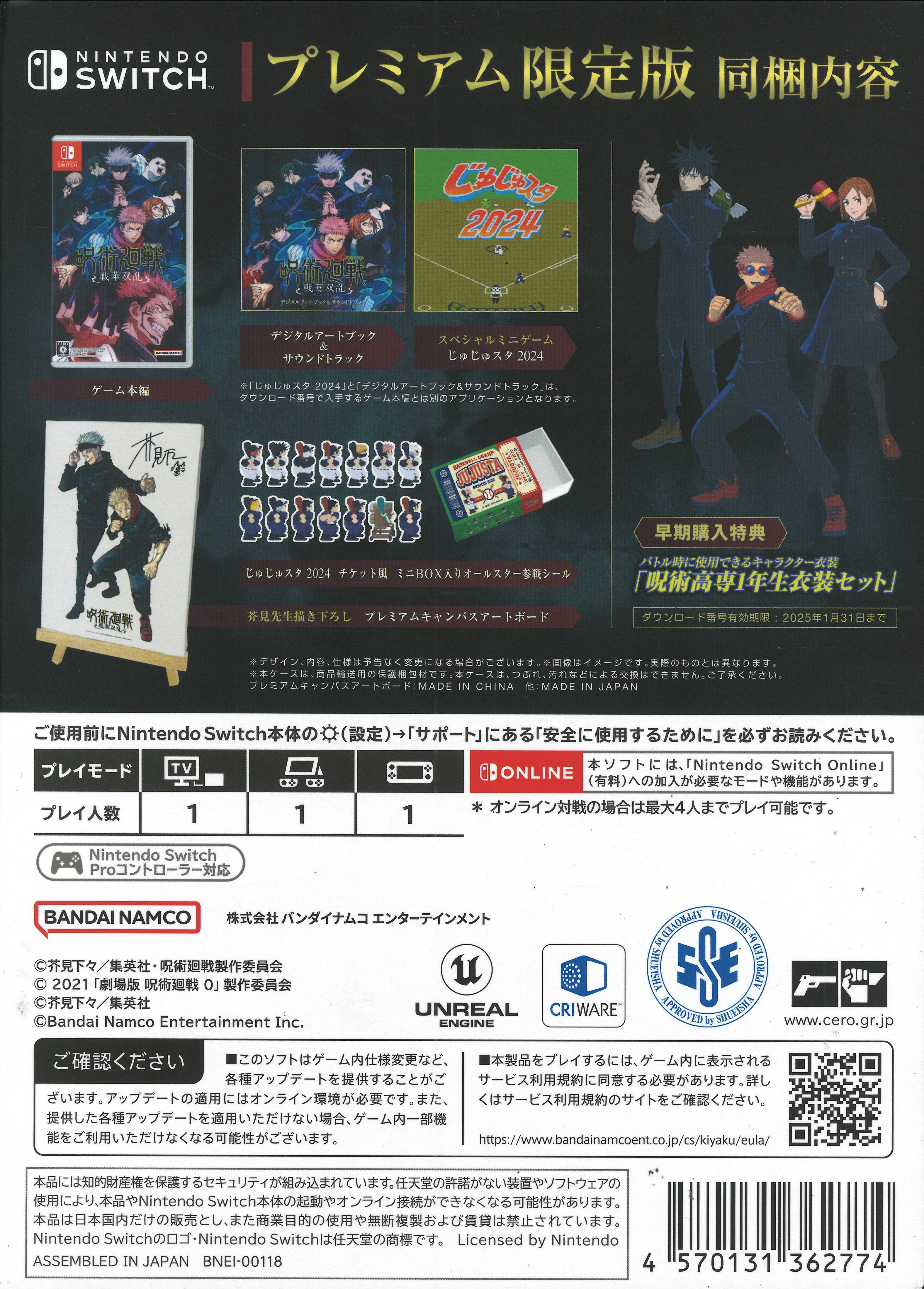 □BANDAI NAMCO Nintendo Switchソフト 呪術廻戦 戦華双乱 開封品
