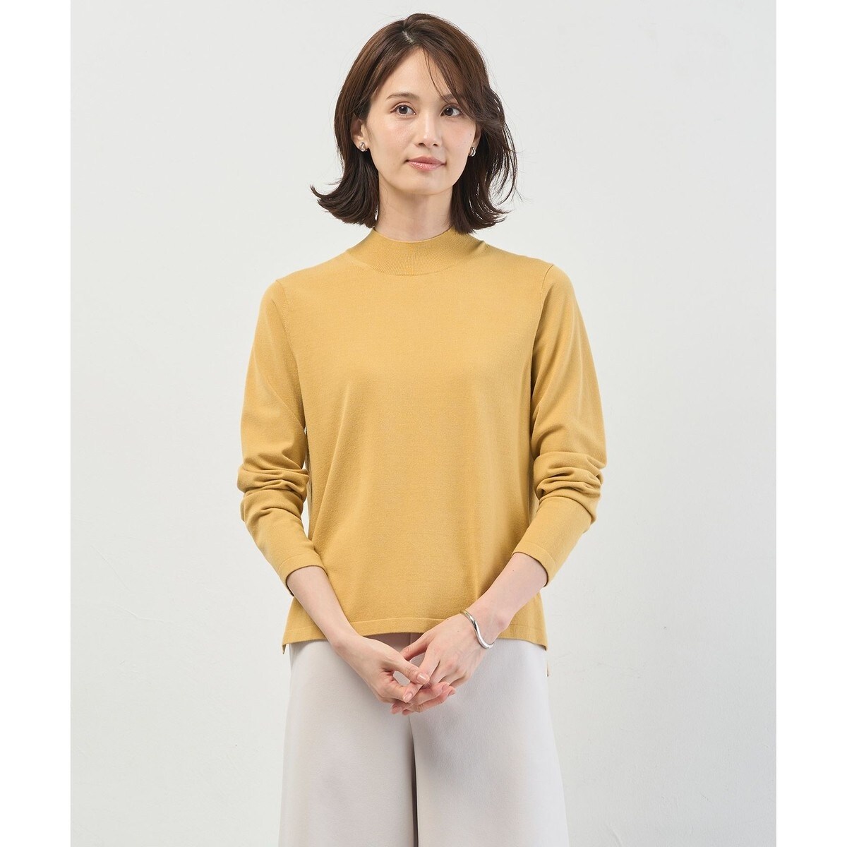 ■デザイン首周りにやさしく沿う、シンプルなハイネックニット。高すぎないネックデザインで首元をすっきりとカバーしながら、上品な抜け感も与えます。袖口や裾は締め付けのないストレートシルエットに。軽やかに着られて、自然と馴染む、リラックス感のある1枚です。1枚着としてもインナー使いとしても活躍する、持っていると頼れるベーシックアイテムです。カラーは、清潔感のあるやわらかなオフ(#001)、上品で落ち着きのあるグレージュ(#003)、シックで引き締まった印象のブラック(#005)、肌なじみの良いナチュラルなトップベージュ(#033)、明るく気分を上げてくれるイエロー(#040)、清潔感のあるさわやかなブルー(#074)、こなれ感の出るトップベージュ×ダークブラウン(#133)、軽やかでフレッシュな印象のミント(#062)、優雅で上品なニュアンスカラーのラベンダー(#083)、優しくフェミニンなピンク(#112)の10色の展開です。