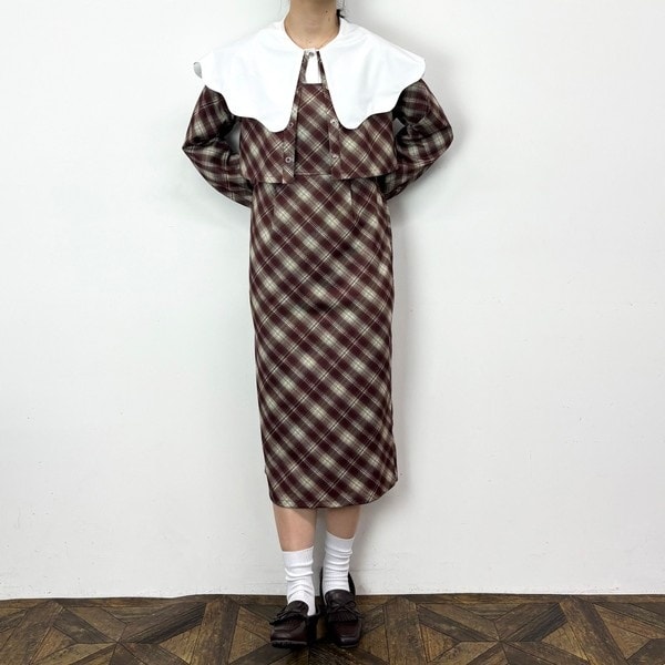 トレンド感のあるバイアスチェックが目を惹き、伸びの良いカットソー生地が着心地の良いセットアップです。