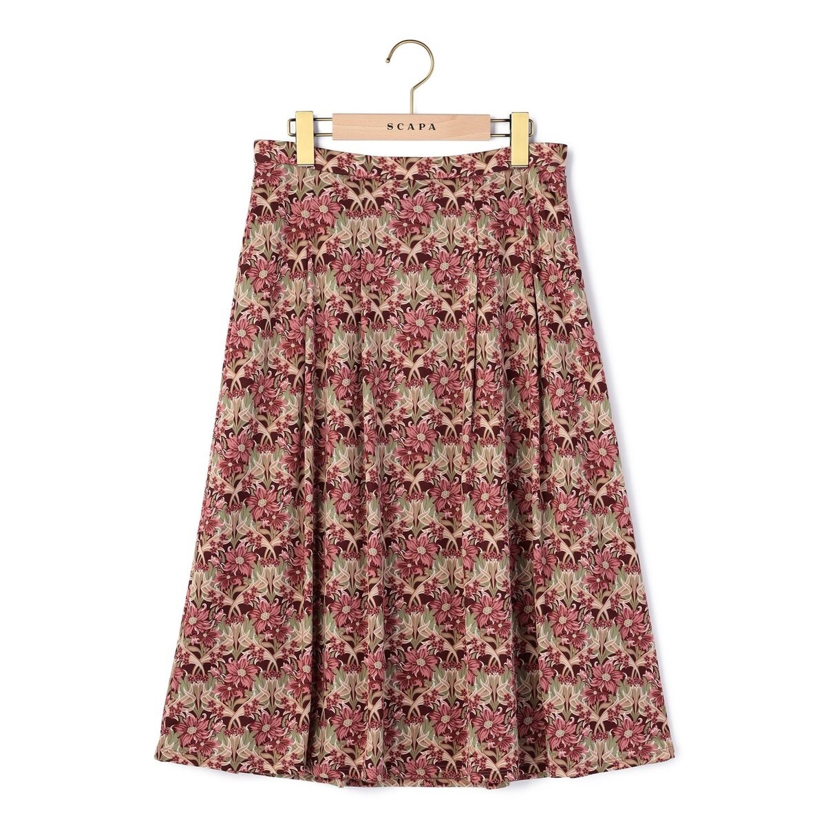 ウエストギャザーの快適なフレアスカート。フラワー柄のリバティプリントが華やかなデザインです。シルエットは広がりすぎず、安心のミディアム丈は気になる脚のラインをカバー。軽いポリエステル素材で、シワになりにくいのも魅力です。自宅でのお手入れも簡単に行えます。