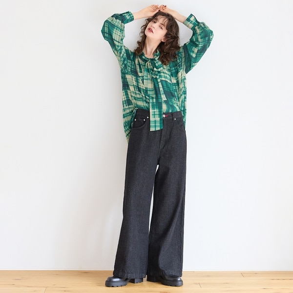 ワイドデニムでもカジュアルに映りすぎない、女性らしく上品な印象に仕上げたR-ISMらしい一本。