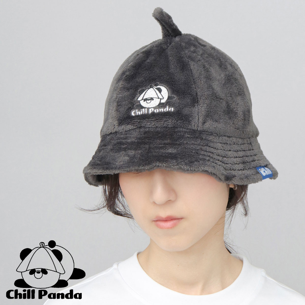 メトロハットのようなオシャレなシルエットのボディに、フロントの「チルパンダくん」の刺繍デザインがかわいいサウナハット。サイドのピスタグがアクセントに◎