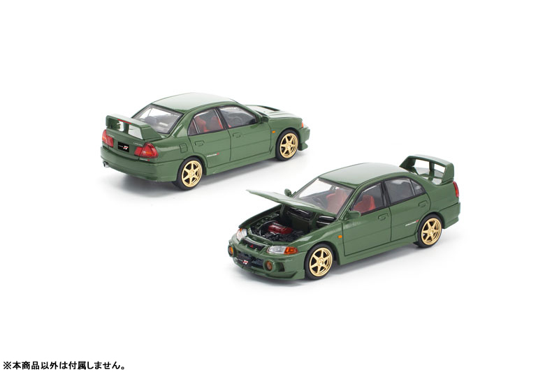 POP RACE × Enigmaより、「1/64 三菱ランサー エボリューションIV グリーン」が登場。フロントフード開閉ギミックを搭載し、精巧に再現されたエンジンディテールをお楽しみいただけます。 ベーシック仕様:フロントフードがボディカラー同色