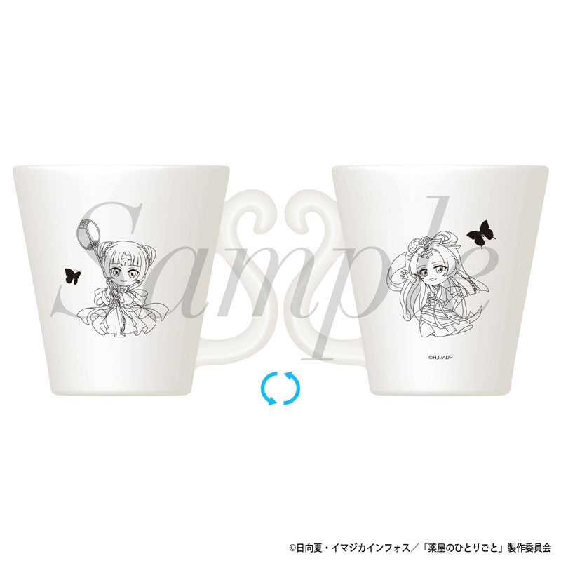 持ち手がしっぽのようなデザインのマグカップです。 猫猫と壬氏を大きくプリントしました。