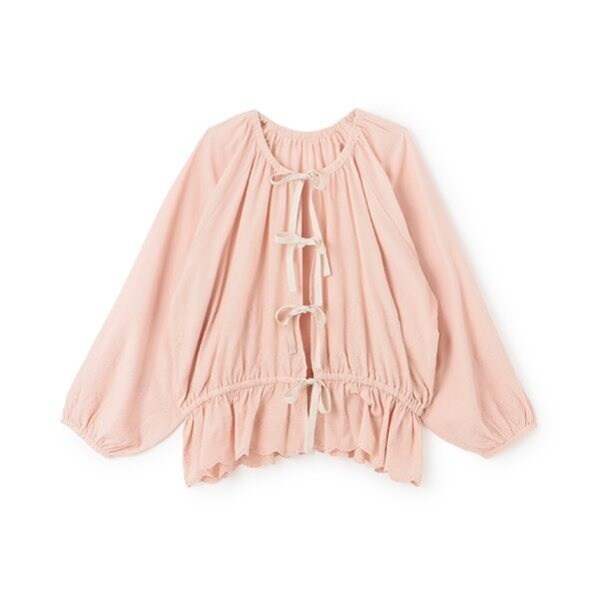 前開きの部分にはリボンをあしらい、可愛らしいアクセントをプラス。
