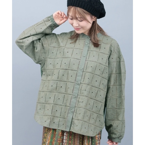 レース切替シャツブラウス