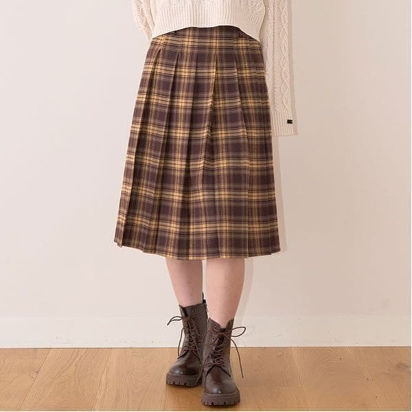 長めのプリーツが綺麗な縦のシルエットを演出し、スタイルアップ効果。