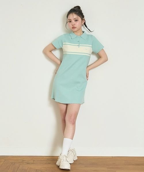 トレンドのスポデザインが可愛いニットポロワンピース