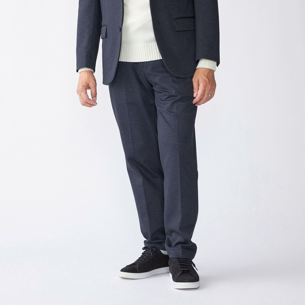 スタンダードなテーパードシルエットのイージースラックスなので、パンツ単品でもご使用いただきやすい一着です。