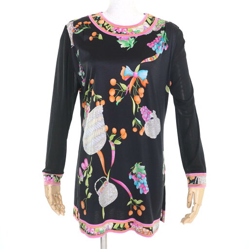 極美品◎LEONARD FASHION レオナール ファッション 0159201 総柄プリント トップス ブラック ホワイト 38 日本製 正規品 レディース【中古】