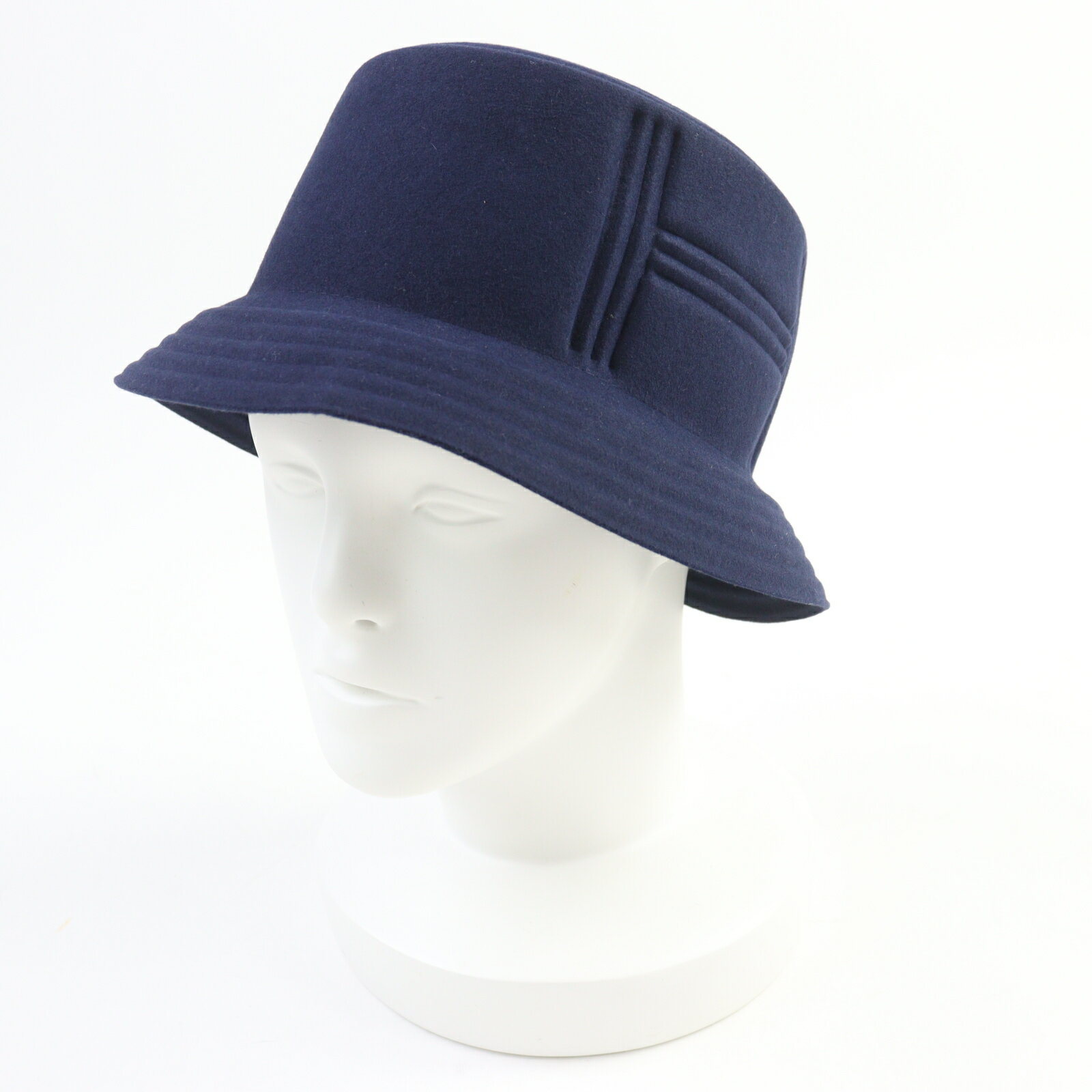 極美品▼HERMES エルメス ラフィア セリエボタン 中折れ帽子 ストローハット ネイビー ブルー 58 イタリア製 正規品 メンズ【中古】