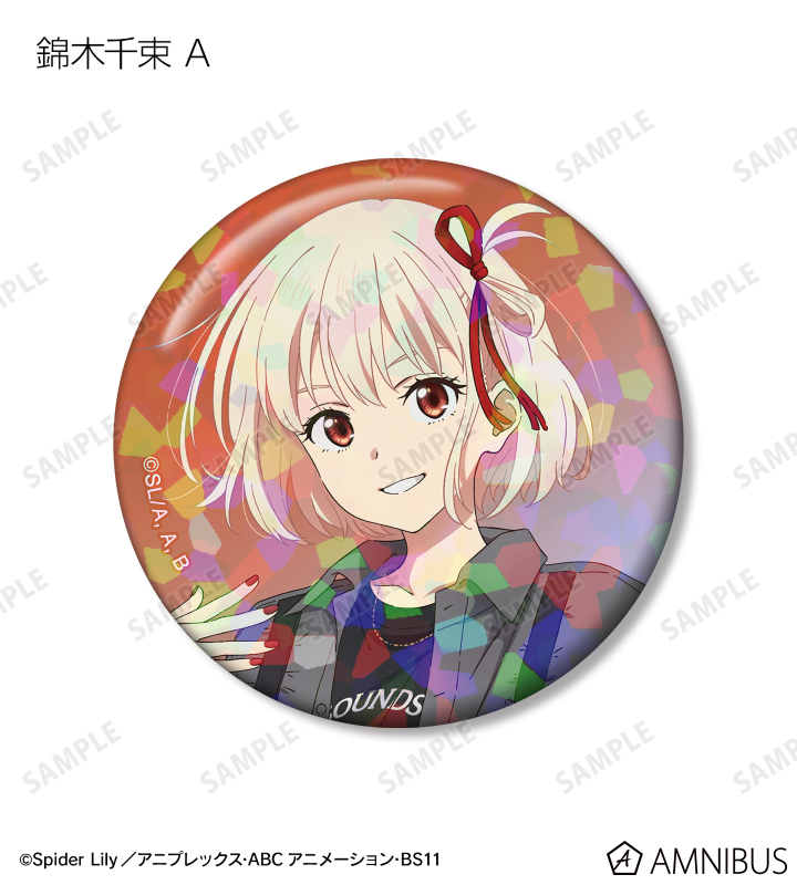 TVアニメ「リコリス・リコイル」×「meagratia」のコラボレーションアイテム「meagratiaコラボ 描き下ろし&ちびキャラ トレーディングホログラム缶バッジ」の登場です。
