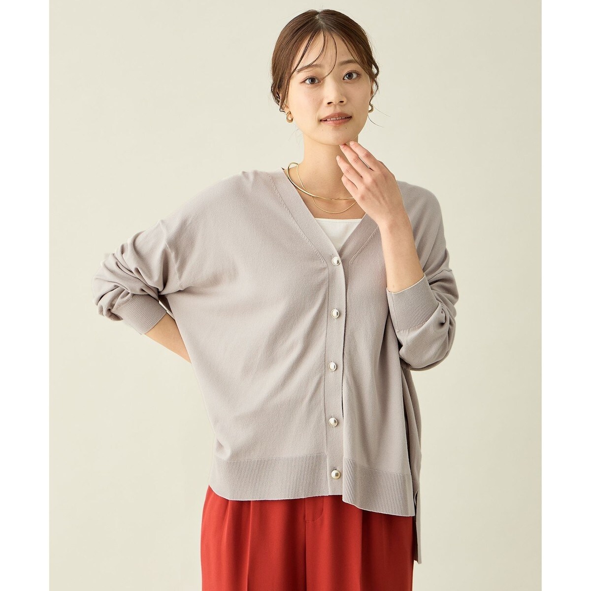 any FAM/anyFAM/any fam/エニファム/エニィファム/ゆるカーデ/体型カバー/羽織りコーデ/ゴールドボタン/大人カジュアル/秋コーデ/レイヤード/ボクシーシルエット/着回しカーディガン