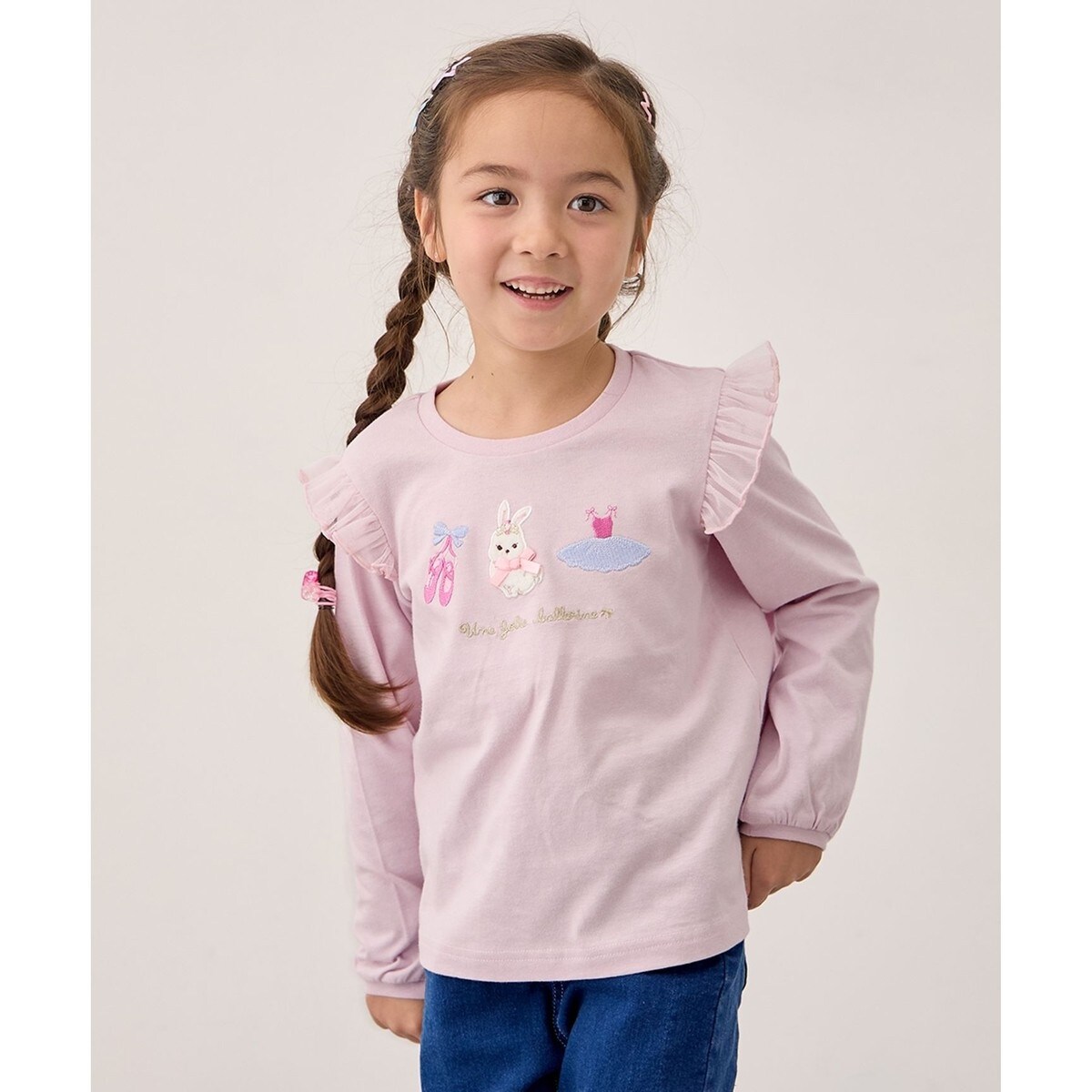 おけいこモチーフの刺繍やアップリケ、リボンを贅沢にあしらった長袖Tシャツ。