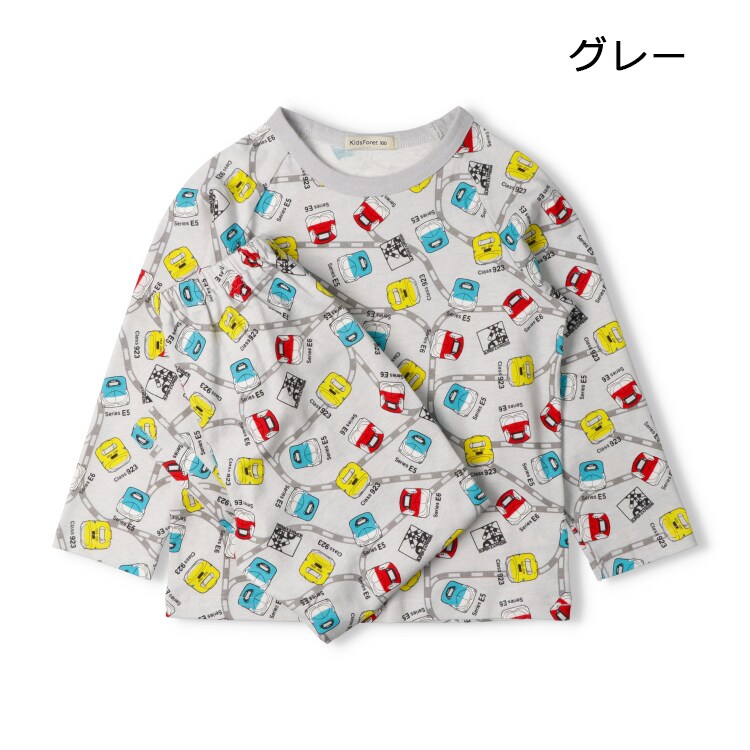 男の子が大好きな電車!毎シーズン大人気のJRコラボシリーズです!JR東日本商品化許諾済み商品です。正面から見た人気の新幹線のはやぶさ、こまち、ドクターイエローの総柄。線路風の背景のプリントも可愛い!天竺素材、Tシャツ素材の長袖、長パンツのパジャマ。(90cmのみお腹が出ない脇ボタン仕様です。)【アイテム】雑貨 カジュアル お洒落 オシャレ かっこいい かわいい 可愛い 普段着 デイリーウェア お出かけ 子ども こども 男児 男の子 ボーイズ キッズ ベビーサイズ トドラーサイズ ルームウェア 寝巻 幼稚園 保育園 小学校 通園 通学 小学生 遠足 旅行 2025年秋冬物新作 丸高衣料 小物 キッズフォーレ 電車 新幹線 ハングリーハート トレイン 鉄道 子鉄 車両 電車 電鉄 グレー 灰色 ブルー 青色