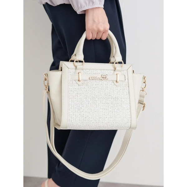 上品なツイード素材にビジューのリュクスな輝きがアクセントになったバッグ。