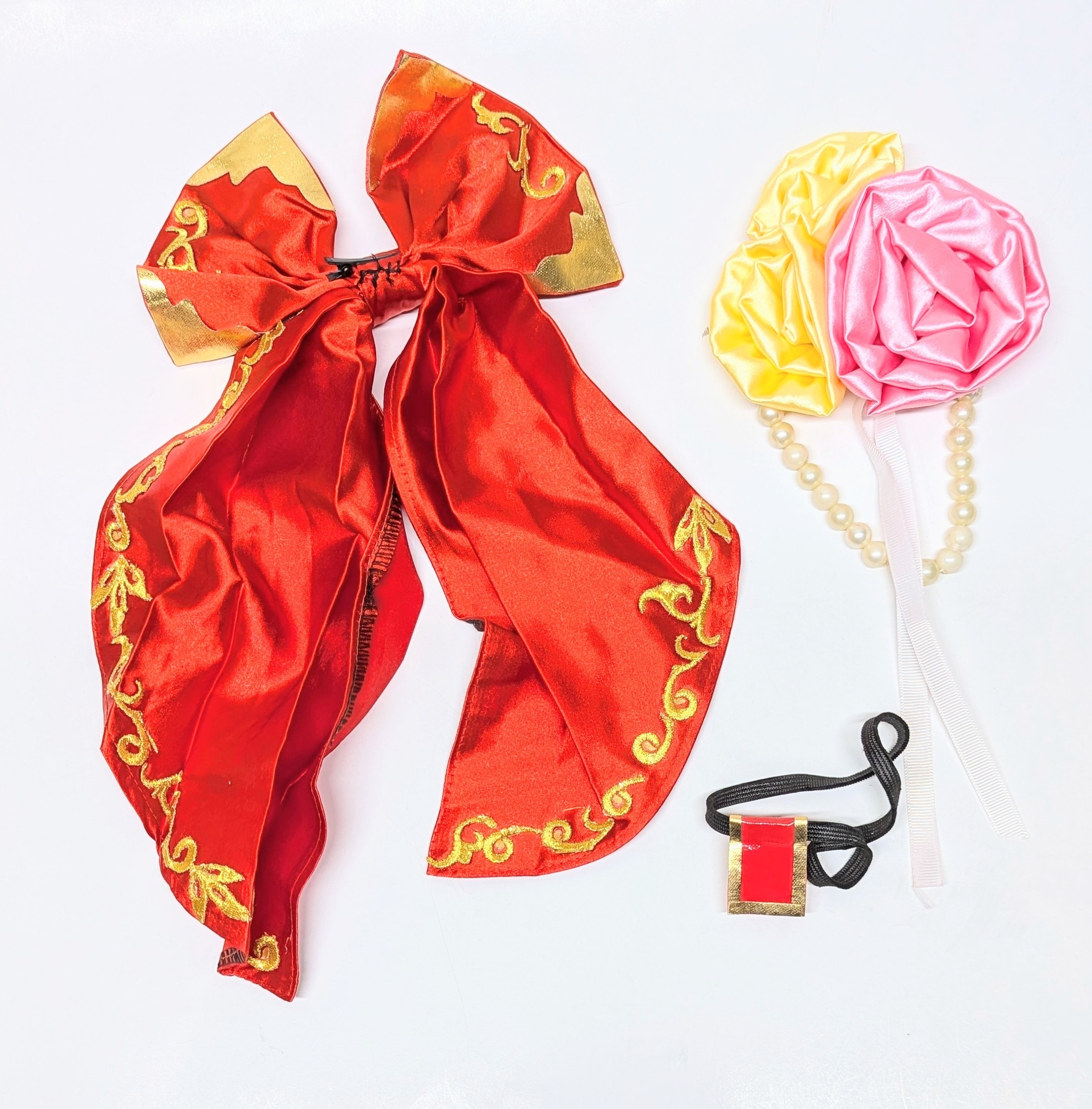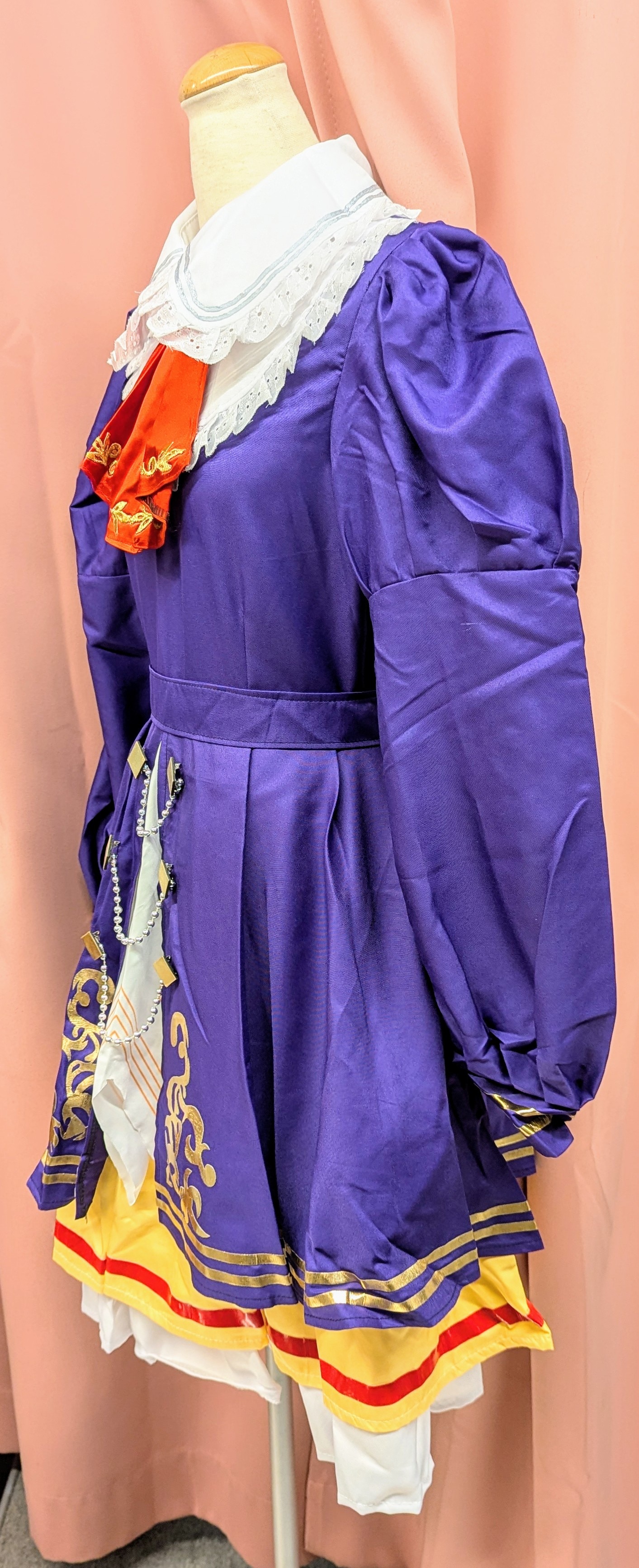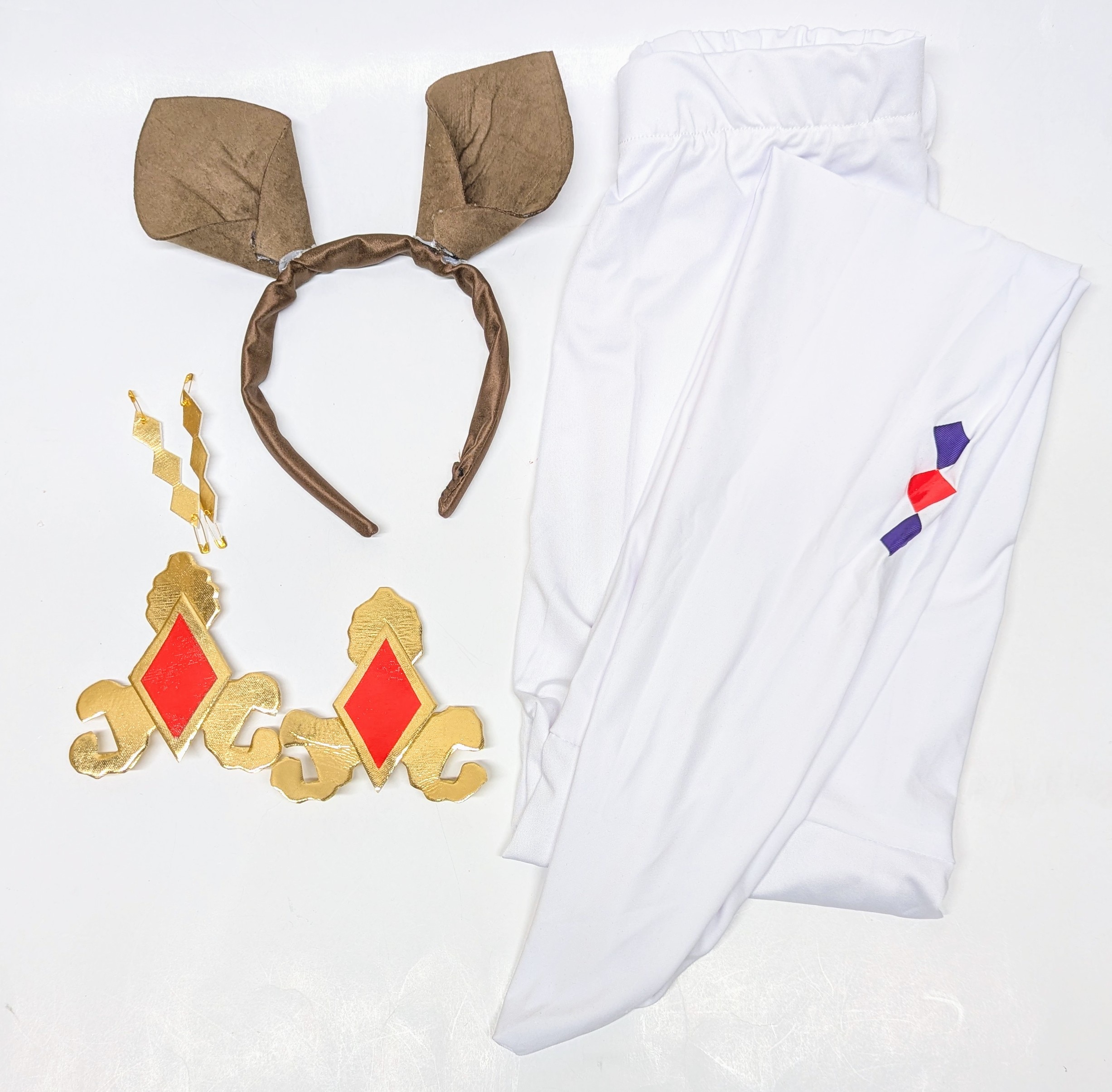 状態 : ワンピース袖ペン跡・背面少穴有り。タイマジックテープ裏表縫い違い有り。(状態:5) 製作 : サークル製 サイズ : 女性Mサイズ位(日本標準サイズ/サイズ詳細はお問い合わせ下さい) セット内容 : ワンピース、タイ、ベルト、タイツ、襟パーツ×2、袖用ブローチ×2、髪リボン×1、髪飾り×1、ヘアゴム×1、ウマ耳カチューシャ ※セット内容以外の物は含まれません。
