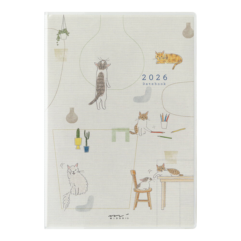 イラストレーター、「小泉さよ」さんによる、やわらかな雰囲気のネコイラスト+コラムのダイアリーです。2026年版のテーマは、「小泉さん家のネコたち」。4匹のネコを飼っている小泉さん家の個性豊かなネコたちの日常を詰め込みました。巻末には、子猫がやってきた!のコラム付き。2026年版のイラストを描いている最中に家にやってきた新入り子猫のコラムになっています。スケジュールやメモをたくさん書き込みたい方にオススメの手帳。便利なインデックス付きです。各月、月間ブロックページの後に、見開き1週間(右面メモ)のページが入っています。メモページにはその年の出来事や印象に残ったことを1年分書き込める「マイメモリーズ」が付いています。●日付期間(掲載期間):月間:2026年1月〜2027年3月 週間:2026年1月〜2026年12月●罫内容:月間ブロック+1週間/メモ●記入欄:六曜、年間カレンダー、年間スケジュール、メモ、マイメモリーズ、パーソナルページ、月曜日始まり●サイズ(判型):B6●寸法:H180mmW126mmD12mm●表紙:表紙/ PVC 製、ペンホルダー付●中紙:MD PAPER●ページ数:192p