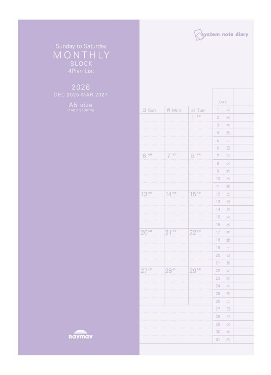 26システムノートダイアリー ブロック日曜A5