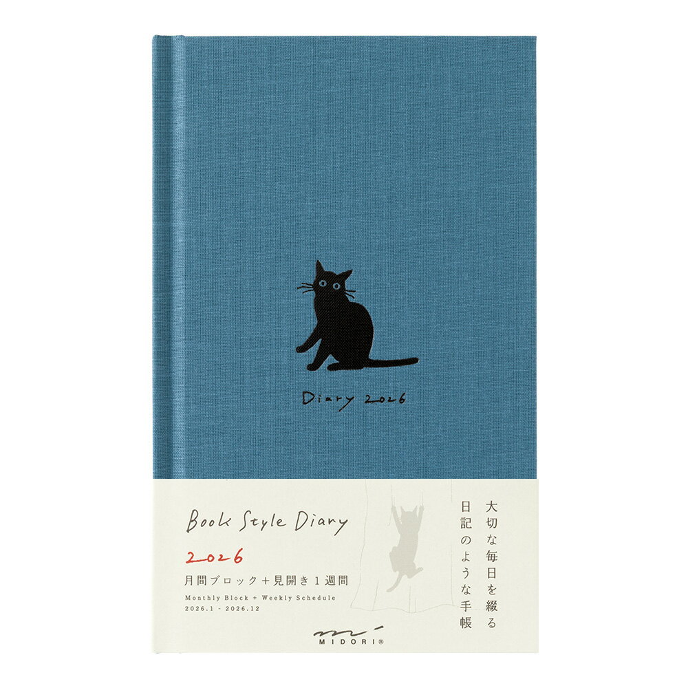 毎日の出来事を日記のように書き記すダイアリー。書き終えた後も大切にしたい、本のような形が魅力です。本文は1ヵ月の予定が一覧できる月間ページ、中心を区切ってたくさん書ける週間ページのほか、記録を残すためのおまけページも充実。糸かがり綴じの製本で180度フラットに開くため、ストレスなく文字を書き込むことができます。表紙は、布クロスで本のような佇まいに仕上げ、アクセントに箔押しを施しました。「ネコ柄」イラストレーター「小泉さよ」さんが描く、ドローイングのような柔らかなタッチのイラストを毎ページお楽しみいただけます。「黒猫との暮らし」がテーマです。●日付期間(掲載期間):2026年1月〜2026年12月●罫内容:月間ブロック+見開き1週間●記入欄:年間カレンダー、年間スケジュール、メモ、思い出ページ、ギフトリスト、ギャラリーページ、パーソナルメモ、月曜日始まり●サイズ(判型):B6変形●寸法:H185mmW113mmD14mm●表紙:表紙/布クロス貼り ●中紙:MD PAPER●ページ数:176p