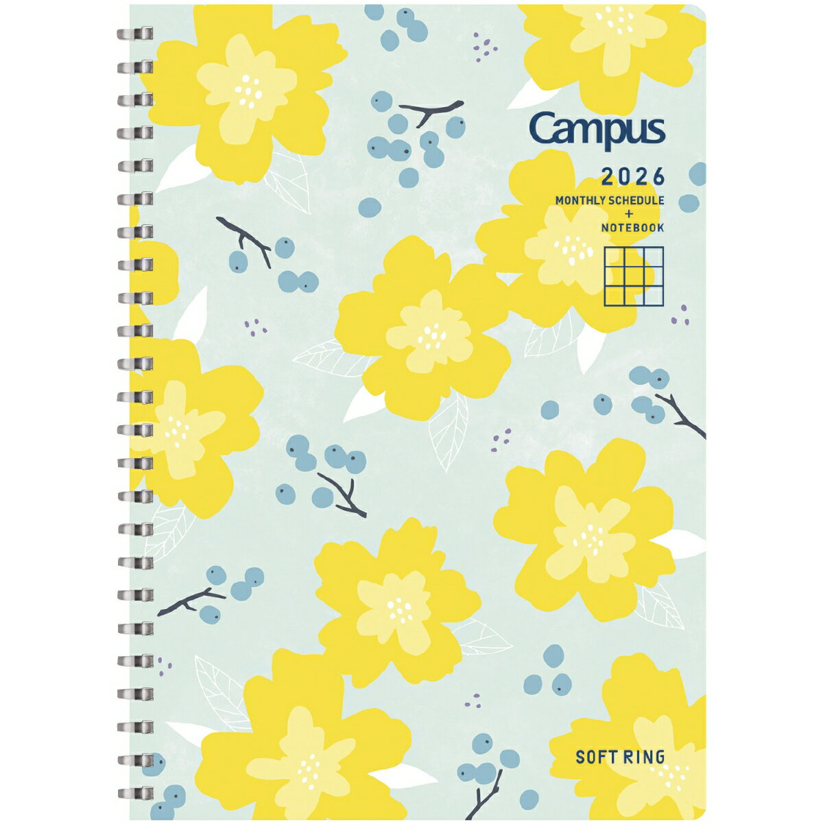●コクヨ独自開発の「やわらかリング」を採用したソフトリングノートシリーズのマンスリーダイアリー。●平らに開くので書き込みやすい、平らに折り返せるので狭い場所でも心地よく使える、といったリングノートのよさはそのままに、書くときリングに手が当たっても気にせず端まで美しく書けます。●ノートページは自由度が高い方眼罫を採用。普通のノートに近い感覚で文字が書け、簡単な図やイラストなども描きやすいです。●ノートページが121ページついています。●見開きで7カ月(約半年)を俯瞰することができるイヤープランナーページを採用。ざっくりとしたガントチャートやフューチャーログ的な使い方ができ、業務の流れや計画を長期単位で把握しやすくなります。●日付期間(掲載期間):2026年1月〜2026年12月●罫内容:方眼罫●記入欄:年間カレンダー・イヤープランナー・月間カレンダー(見開き両面1カ月・ブロック式)●サイズ(判型):A5●寸法:高さ21×幅15.7×厚さ1cm●色:フラワー柄●表紙:表紙:PP、リング:オレフィン系樹脂●中紙:上質紙●ページ数:121