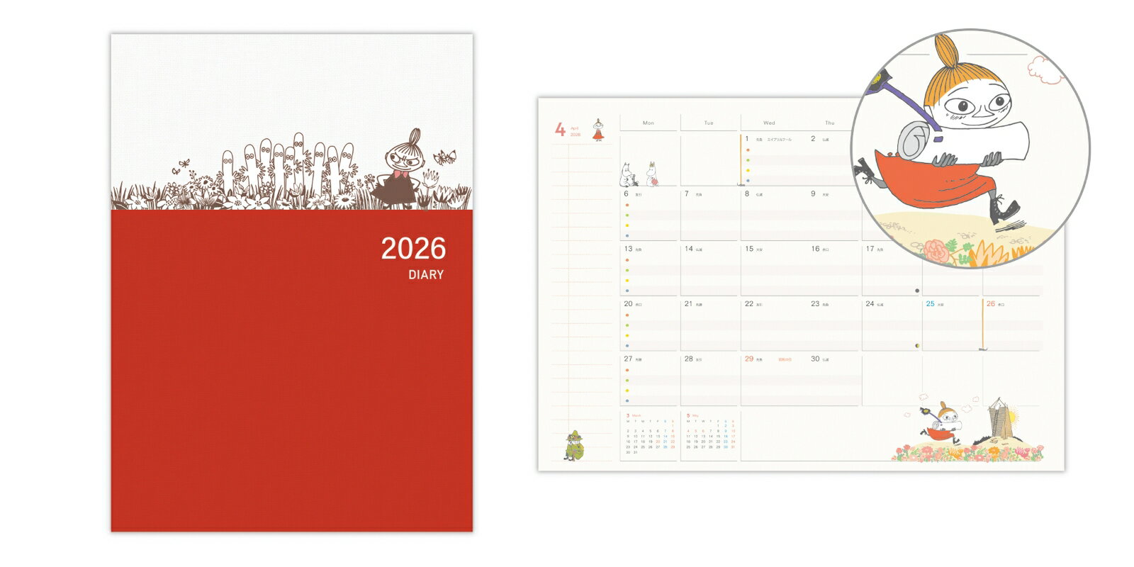 仕事やプライベートの予定、家族のスケジュール管理に。色分けされているのでさまざまな用途で使える便利な大きめダイアリーです。たっぷり書けるToDoリストや、レシートやハガキの収納に役立つジッパーポケットなど、毎日の使いやすさを重視しました。ジッパーポケットは内側タイプなので、外から見えずプライバシーも安心!●日付期間(掲載期間):2025年12月〜2027年3月●罫内容:ブロックタイプ●記入欄:マンスリー●サイズ(判型):A5●寸法:幅14.8×奥行0.5×高さ21cm●表紙:PVC製●中紙:厚手の高品質紙●ページ数:72ページ