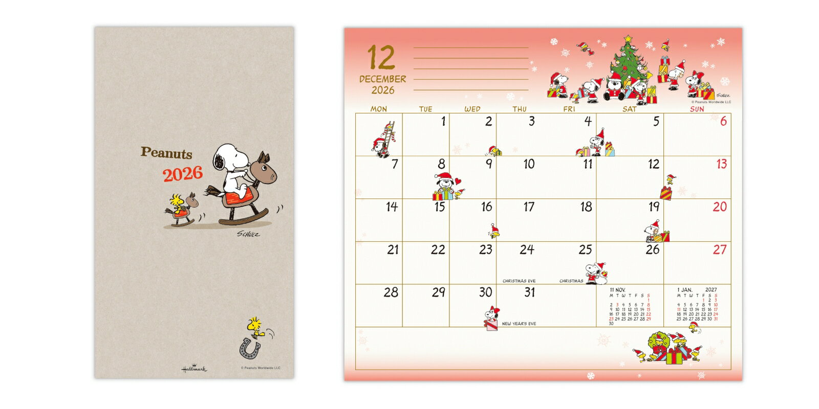 スヌーピー 2026-2027年 ブロック式週間ダイアリー ステッカーおまけ