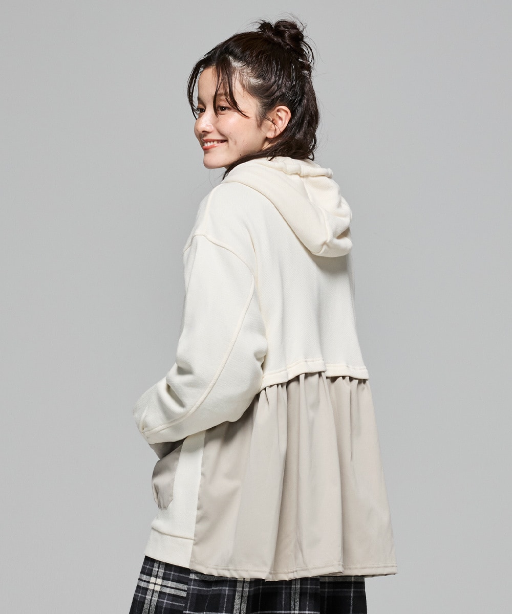 ルピリアン 裏毛スウェット ロゴプリント 異素材ドッキング /ブラウン