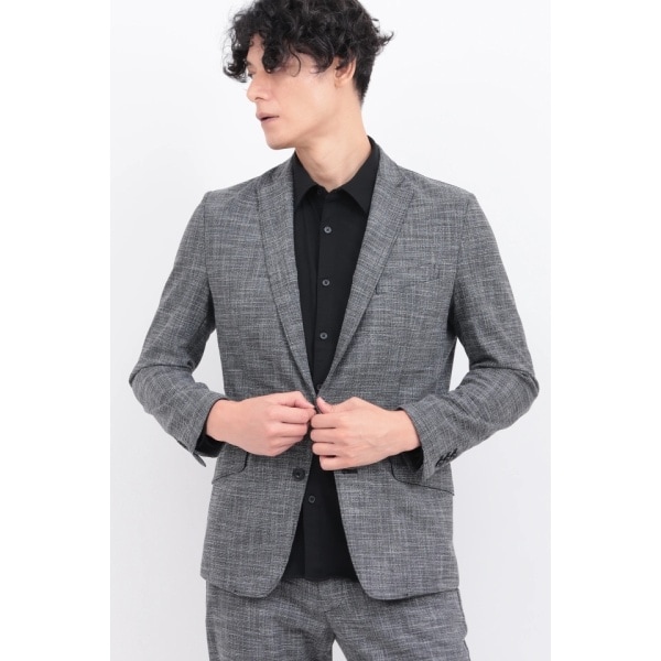TRスラブストレッチブッチャーで仕立てた一重テーラードジャケット。コンパクトなシルエットとメランジの表面感が特徴的な一着。