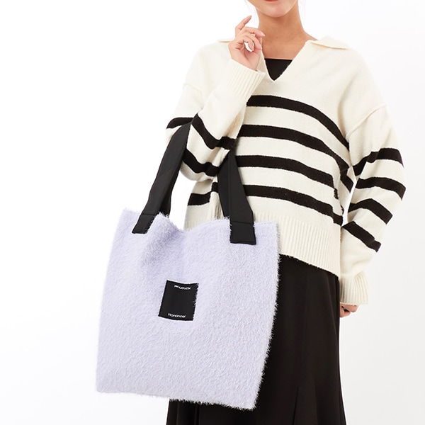 程よいラメのシャギー素材が楽しいトートバッグ。