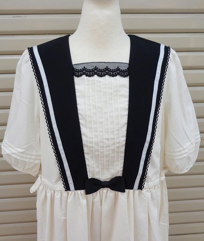 【状態】 状態4/紙タグ・ブローチチャーム付き・全体的に目立つ色移り・動物毛付着・紙タグ汚れ ※画像だと分かりにくいですが、スカートの前部分に広範囲のはっきりとした色移りがございます