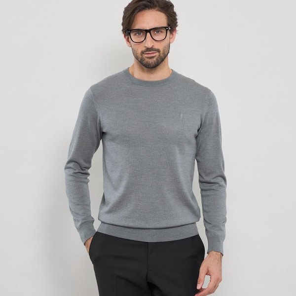 ベーシックなクルーネックのニットはテーラードの考えを取り入れ、立体的な設計に変更しています。身体の形状に合わせてパターン形状、分量感を細かく調整することで、シルエット、着用感が大幅にアップデートされました。肩の接ぎの縫い目をゼロにする特殊な縫製仕様など、パターンと合わせて細部まで、着用感に拘りました。ワンポイントで左胸にダンディマン刺繍が入ります。