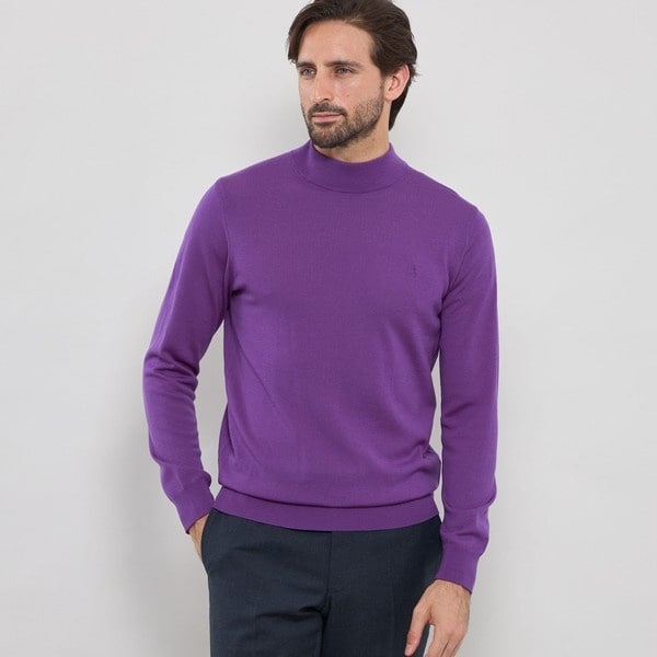 ベーシックなモックネックのニットはテーラードの考えを取り入れ、立体的な設計に変更しています。身体の形状に合わせてパターン形状、分量感を細かく調整することで、シルエット、着用感が大幅にアップデートされました。肩の接ぎの縫い目をゼロにする特殊な縫製仕様など、パターンと合わせて細部まで、着用感に拘りました。ワンポイントで左胸にダンディマン刺繍が入ります。