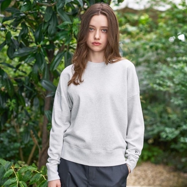 前身頃はドロップショルダー、後身頃はラグランスリーブデザインと、前後のパターンを変えることで作られるゆったりとしたシルエットが特徴。