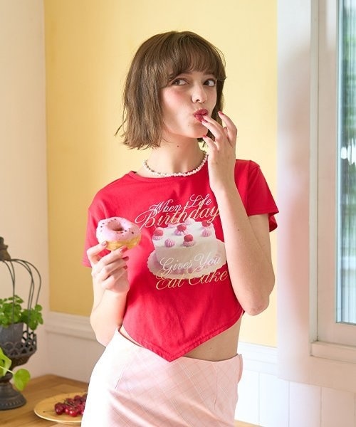 ケーキイラストが目をひくコンパクトTシャツ