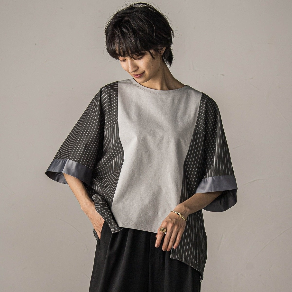 ポリエステル素材 / レーヨン素材 / ストライプ / 5分・7分袖 / ドルマンスリーブ / 洗える / ライフスタイル / アウトドア / キャンプ・レジャー / その他・スポーツ全般 / クルー・Uネック / ラウンドネック / レギュラー丈(トップス)