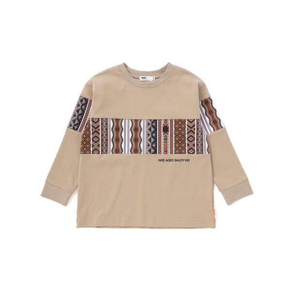ネイティブ柄プリントがアクセントになったロングTシャツ。