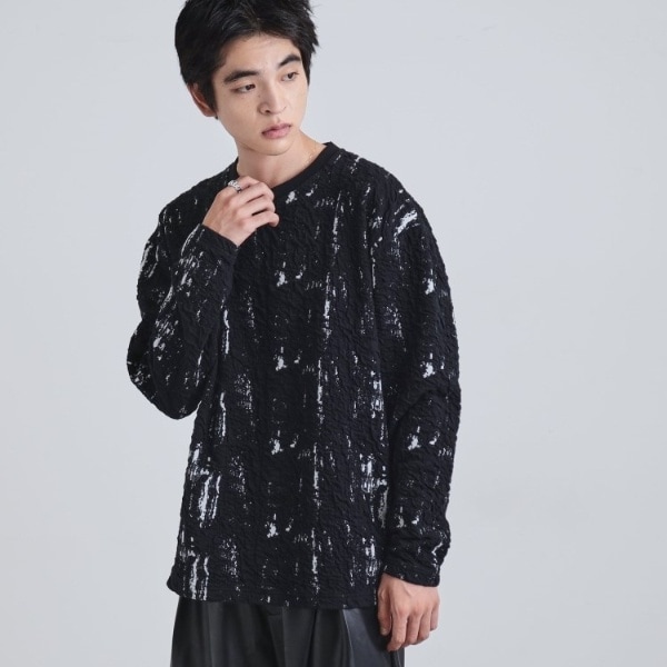 アブストラクトジャカードを使用したクルーネックプルオーバーカットソー。