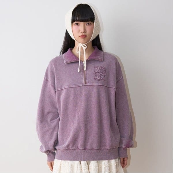 ゆるっとシルエットが可愛いハーフZIP プルオーバー!パープルとクロはヴィンテージ風加工で今っぽく◎