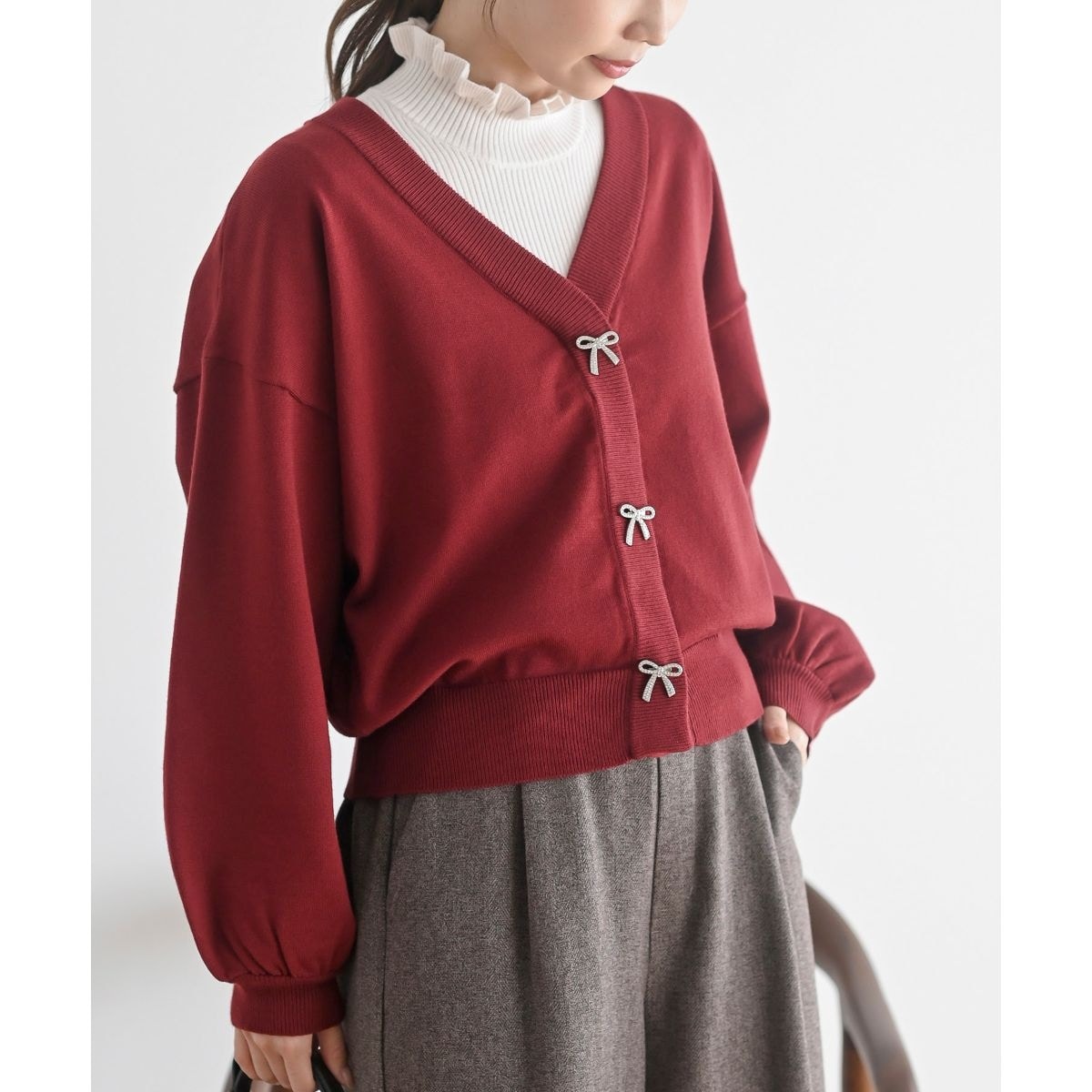 ナイスクラップ リボンボタンカーディガン