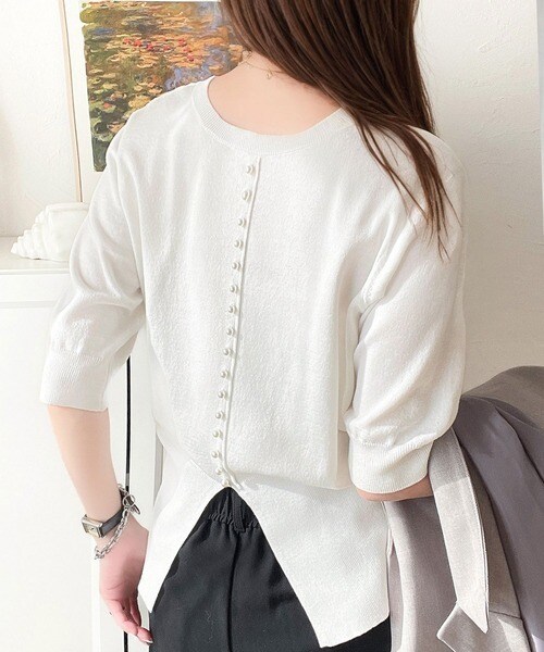 【新品】 パール畦編みプルオーバー ニット レディース トップス 秋冬 長袖 きれいめ
