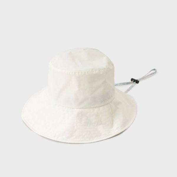 環境に配慮したリサイクルナイロンの生地に、チャーミングなシェルストンのプリントアクセントに用いた帽子です。