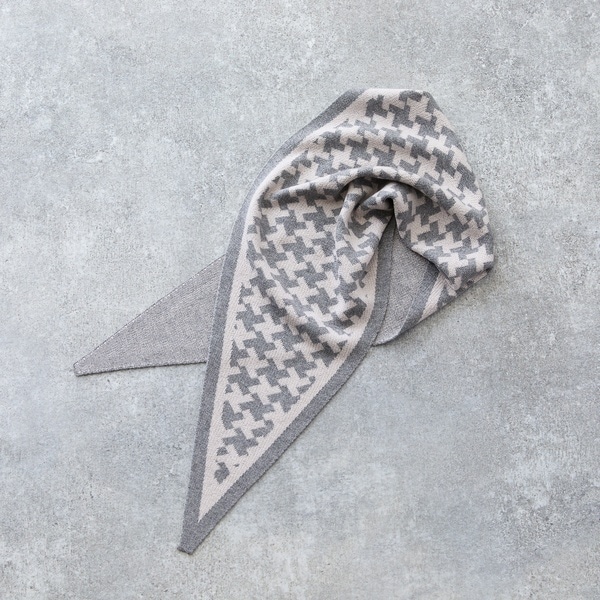 幾何柄模様のニットストール。ニットのため馴染みよくあたたか。