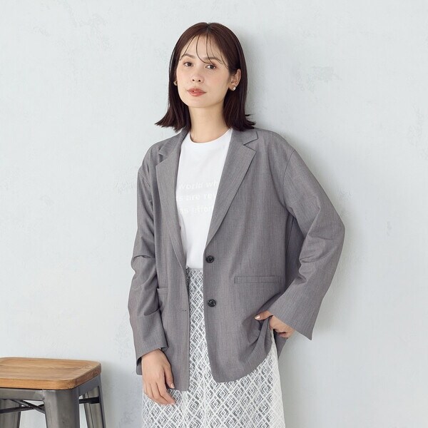 ウエストをシェイプさせない直線的なラインが、マニッシュな印象に。