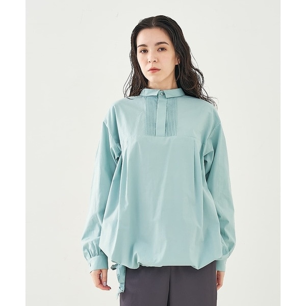 ハリのある素材を使用しているため、シルエットが美しくキープされ、軽いプルオーバー感覚でアウターライクにも着用可能。