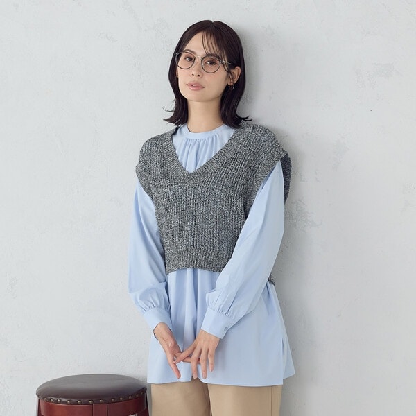 【ニット】厚さ:中肉【ブラウス】厚さ:薄手