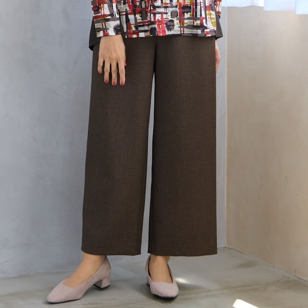 広がり過ぎないシルエットなのでコーディネートに取り入れやすく、ウエストは後ろゴムで伸縮し快適です。