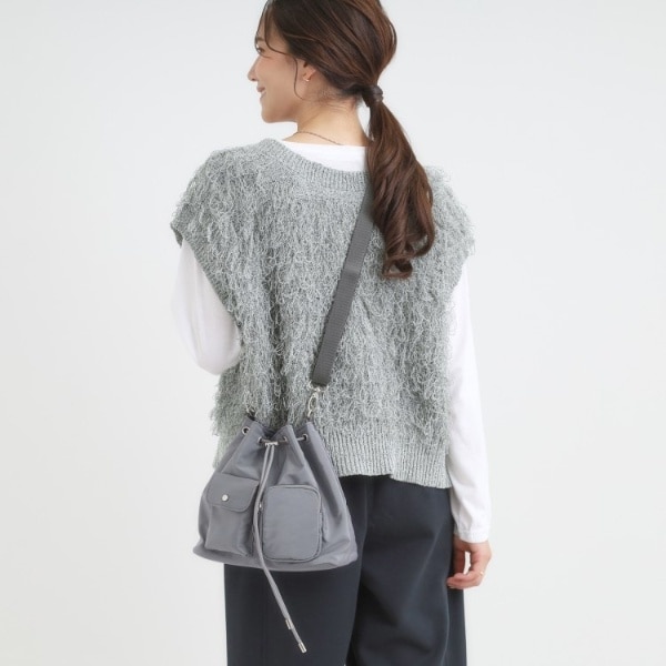 2WAY/巾着ポーチ/撥水/グレー/ナイロン/67193689