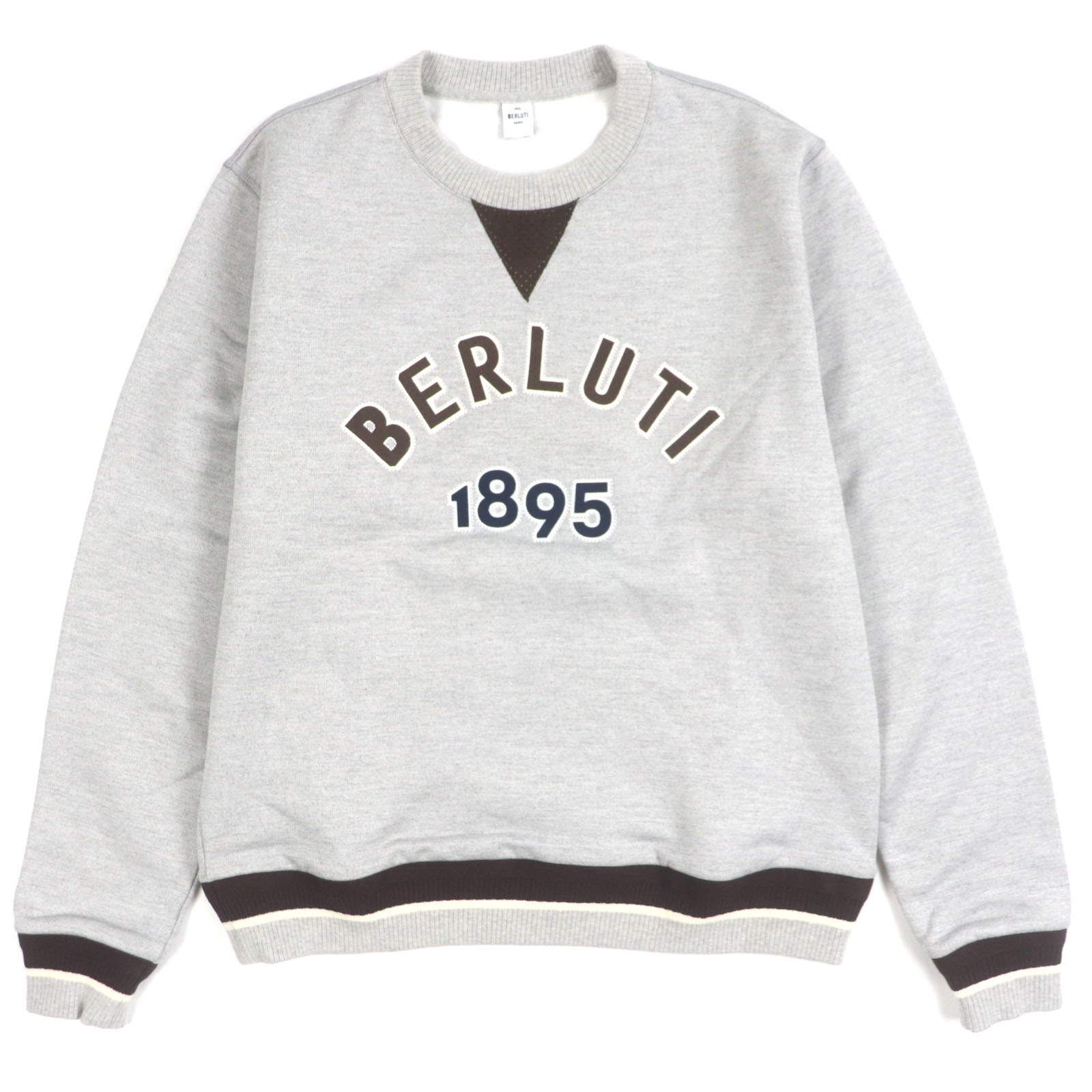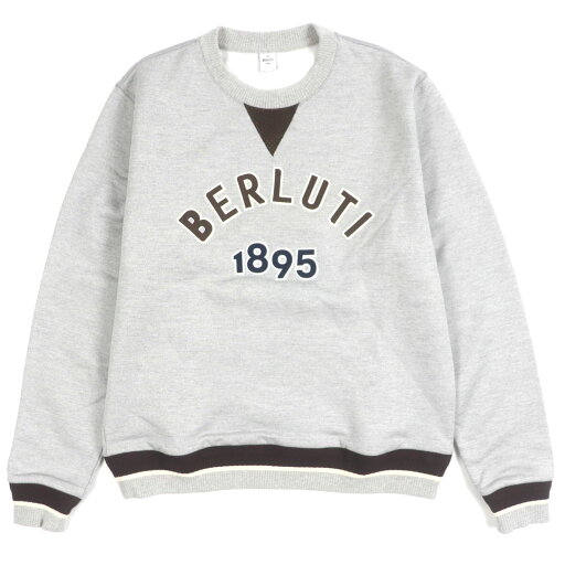 極美品□BERLUTI ベルルッティ ロゴパッチ クルーネック ショートスリーブ 半袖Tシャツ カットソー グレー XS イタリア製 正規品 メンズ【中古】